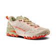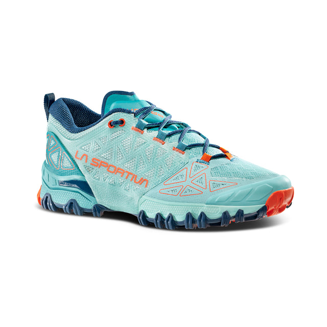The FriXion Red double compound sole has different support surfaces: the rounded shape of the external lugs that rise sideways to touch the midsole, creates a gradual support angle with the ground, maintaining stability even in extreme foot torsion. This allows you to run safely even on more technical terrain in the presence of roots, stones and branches. Maximum support on the medial part of the foot, freedom of movement and comfort at the toe. The result is a shoe that, in pure La Sportiva style, offers new solutions to meet the needs of the most demanding runners, rewriting the rules of the game with a totally new construction never seen before in trail running shoes.