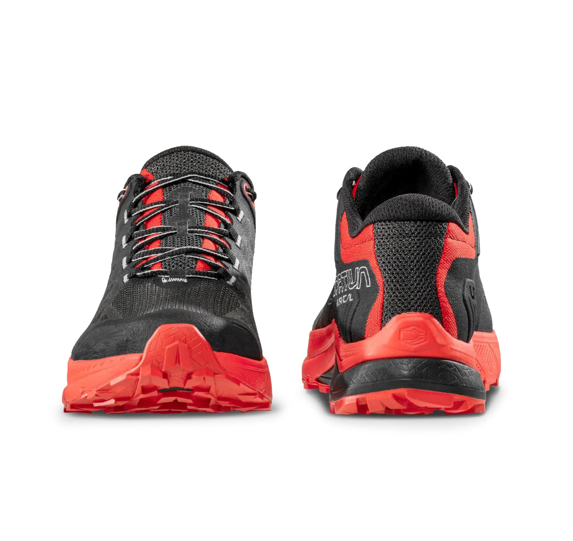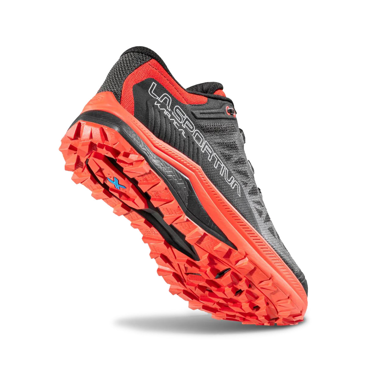 - Mountain Running Impact Brake System: The innovative system is applied to the sole to absorb negative ground impact, help traction and improve grip downhill. Created and developed by the R&D department at La Sportiva, it offers real advantages during racing by reducing negative ground impact. The unique position of the lugs allows as many of them as possible to come into contact with the ground, for maximum impact absorption.