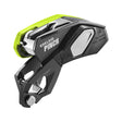 The PINCH is the first device on the market that can be attached directly to the central ring of the climbing harness. Thanks to its low, close-to-the-body position, the PINCH does not need to be fixed in place when releasing the rope and the brake rope can always be gripped with all fingers. In addition, the compact belay system provides an increased span, which allows the belayer to pay out 20 - 30 cm more rope at once. The linear rope run through the frontal steel braking grooves reduces rope tangles when lowering and abseiling. In addition to the release lever, the speed can be controlled by the pressure of the braking hand, which contributes to increased braking rope control, especially when using thin, soft ropes.