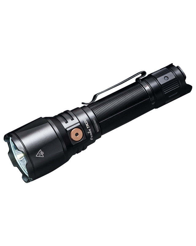 The Fenix TK26R is a tactical flashlight packed full of features. Not only do you have five modes of white light, but you also have an independent red and green light. Powered by one included 18650 battery, this light can blast a maximum 1500 lumens 1148ft (350m).