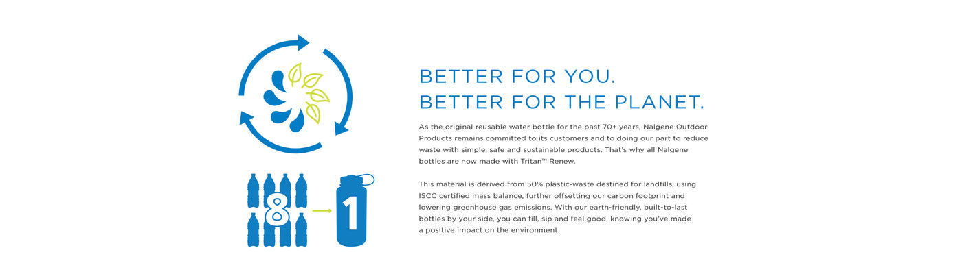 48oz (1.5L) of BPA/BPA-free Tritan Renew, our new material derived from 50% waste plastic (using ISCC certified mass balance).