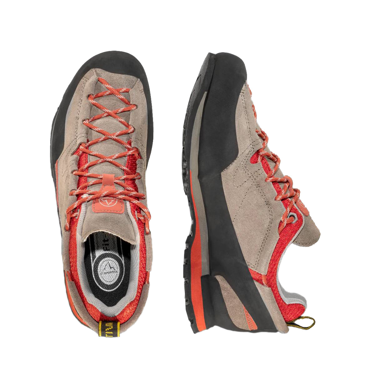 • Mountaineering Impact Brake System: The innovative system is applied to the sole to absorb negative ground impact, help traction and improve grip downhill. Created and developed by the R&D department at La Sportiva, it offers real advantages during racing by reducing negative ground impact. The unique position of the lugs allows as many of them as possible to come into contact with the ground, for maximum impact absorption.