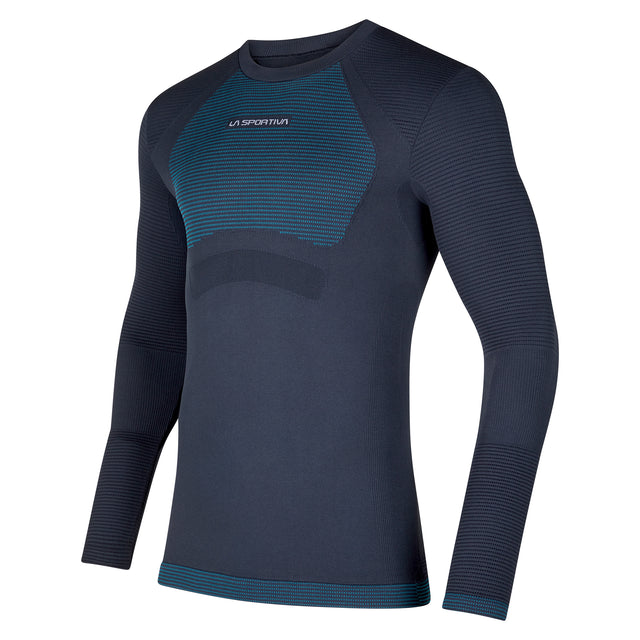 Versatile longsleeve with anatomical fit, warm and breathable, designed for winter aerobic activities.