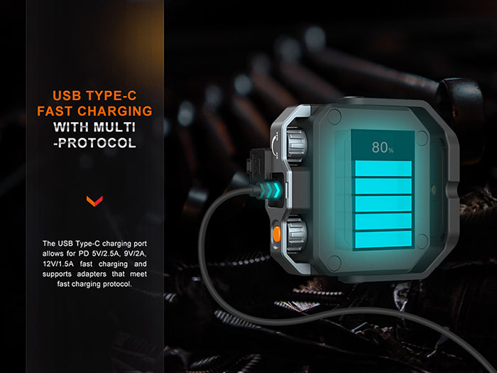 The built-in batteries are charged via the USB-C port and the rechargeable lantern can be used as a power bank to charge other devices.