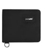 This bifold wallet fits all currencies, has 3 credit cards slots plus an ID window. An attachment point for a cut-resistant strap (sold separately) allows for an added layer of protection.