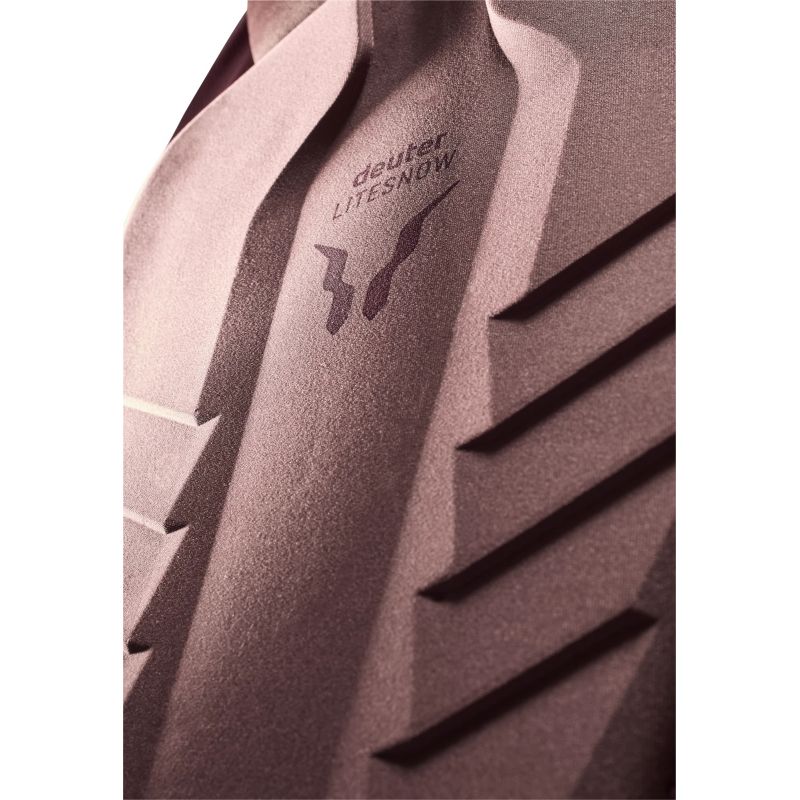 Innovative back system for a dry back: The deuter LiteSnow back system is ultralight, extremely comfortable to carry and water resistant. That’s down to the snow-shedding materials and design. The special shape of the back padding with spaces between the EVA foam covered in Spandex material that’s snow shedding and non-absorbent to moisture results in all-day-long carrying comfort.