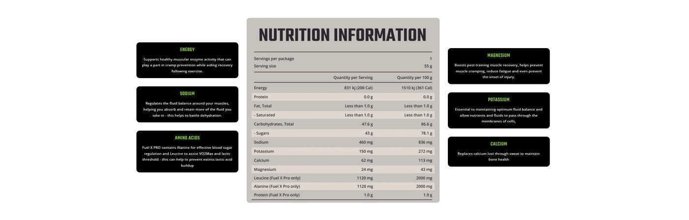 Fuel X endurance drink mix contains everything you need to stay energized, hydrated, and replenished during training and racing.
