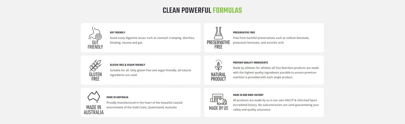 No artificial sweeteners, preservatives, or additives. Fixx Protein X is 100% natural, gluten-free, vegan-friendly, and made in Australia.