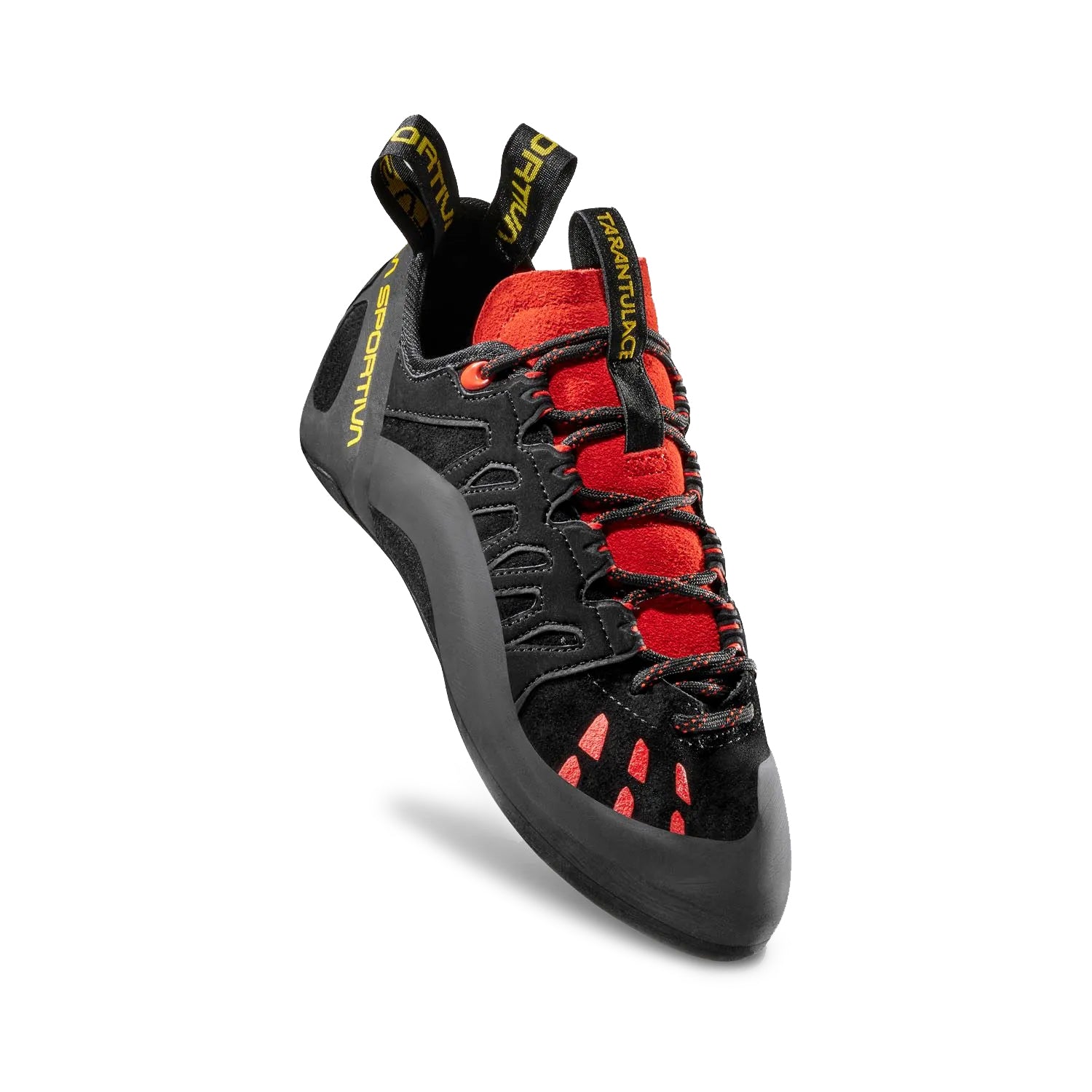 Aesthetic update of Tarantulace, a multipurpose shoe ideal for those approaching the world of climbing and for use in gyms. Fast and functional quick-release lacing. Neutral shape suitable for all types of foot. Excellent volume regulation. The extra thick FriXion® Black 4mm sole guarantees durability over time. The sweat absorbing tongue is designed for prolonged indoor use. The lacing system with laces allows a perfect and personalized adjustment of volumes. Ideal for those who are just starting to climb.